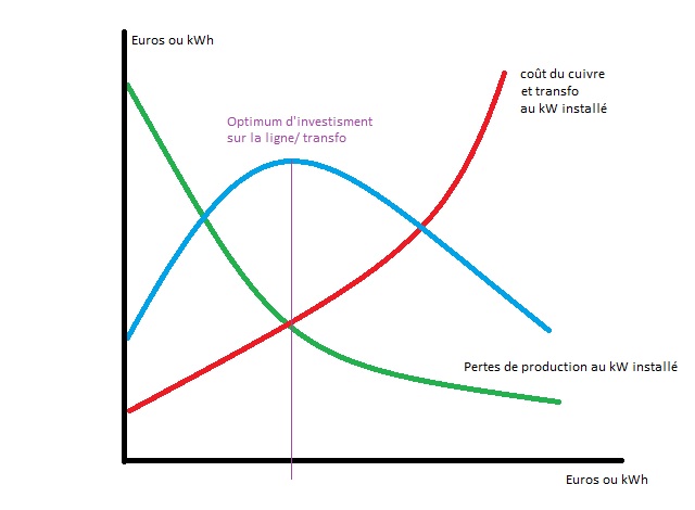 Comme toujours, il y a un optimum, avec des courbes qui se croisent. La production nette en bout de ligne, versus les investissements à faire. Idem pour les tubes d'amenée etc ... C'est en fait plus compliqué, car il faut moyenner tout ça dans la durée, le taux de production 24/24 ou 12/24 ou ...