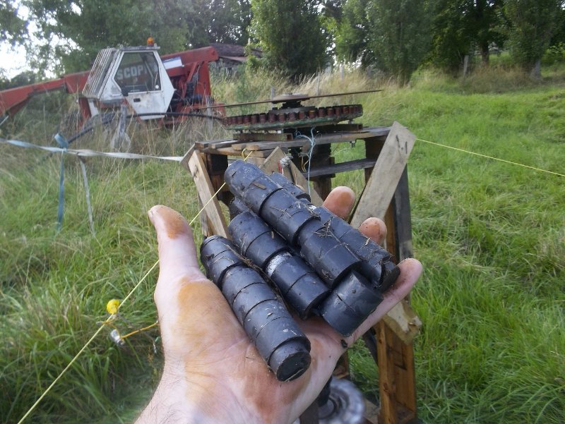 bilan : tres tres bon rendement mais au prix d'enormement d'heures de travail et de mise au point et d'adaptation. le meilleur rendement que j'ai jamais eu sur ma turbine pelton , approchant les 70% de rendement global .