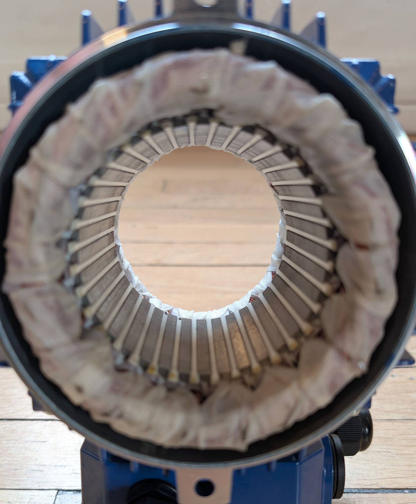 - 36 encoches / 3 phases = 12 encoches par phase / 6 bobines par phase