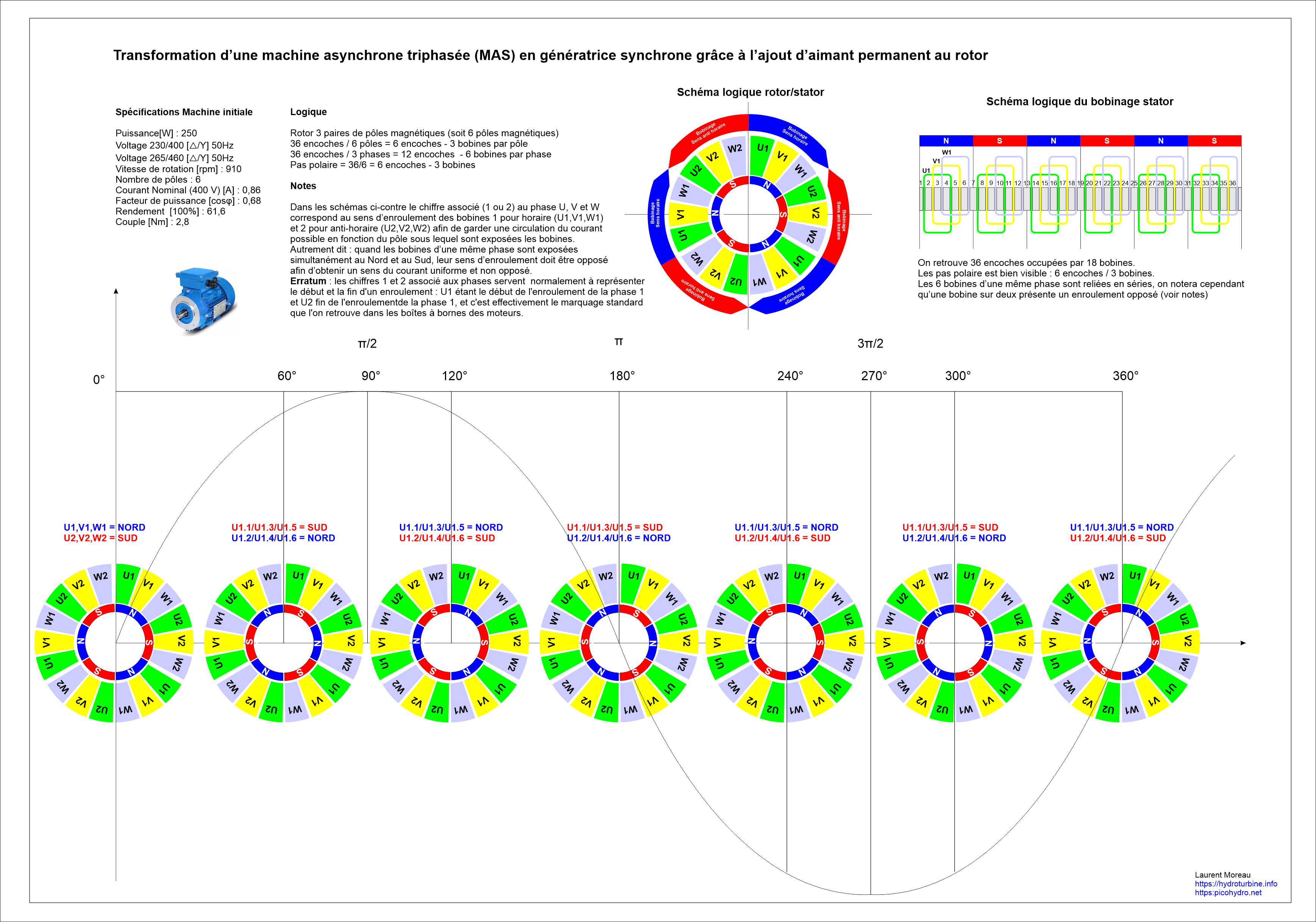 - 36 encoches / 6 pôles = 6 encoches par pôle